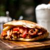 Mięso, frytki, pomidor, sałatka lodowa, sos, marchewką, abo pelyustką, abo sate.