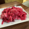 Sałatka na bazie fermentowanej kapusty z dodatkiem buraka i lekko kwaskowy smak.