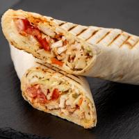 Kebab z mięsem, warzywami oraz marchewką po koreańsku i pelyustką.