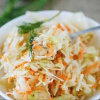 Sałatka na bazie fermentowanej kapusty z dodatkiem buraka i lekko kwaskowy smak.